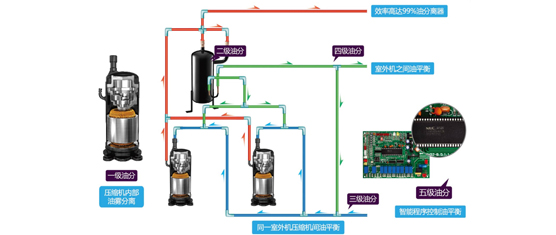 精細油控制技術把分油效率提升到99%,并實現自動回油,保證壓縮機油量供應,運轉更穩定。