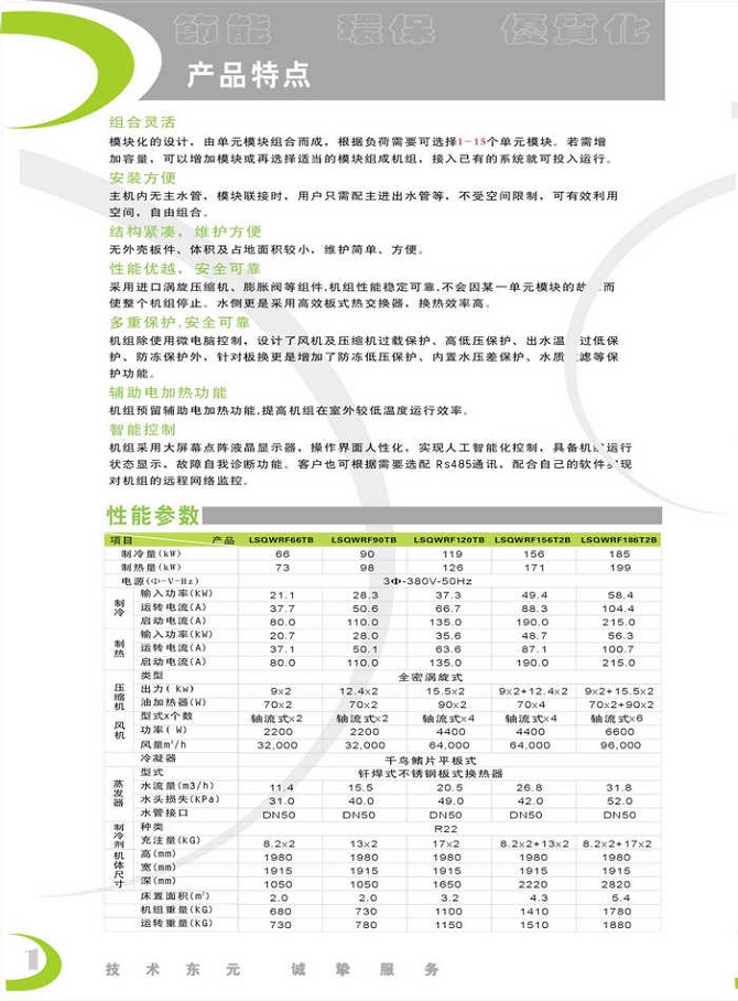 東元風(fēng)冷模塊機(jī)(65KW-130KW),風(fēng)冷模塊機(jī)組是以空氣為冷(熱)介質(zhì),作為冷(熱)源兼用型的一體化中央空調(diào)設(shè)備。機(jī)組具有他高效、低噪音、結(jié)構(gòu)合理、操作簡便、運(yùn)行安全、安裝維護(hù)方便等優(yōu)點(diǎn),廣泛應(yīng)用于賓館、商場、辦公樓、展覽館、機(jī)場、體育館等公共設(shè)施的舒適性中央空調(diào)系統(tǒng),并能滿足電子、制藥、生物、輕紡、化工、冶金、制藥、電力、機(jī)械等行業(yè)的工藝性的空調(diào)系統(tǒng)的不同使用要求。