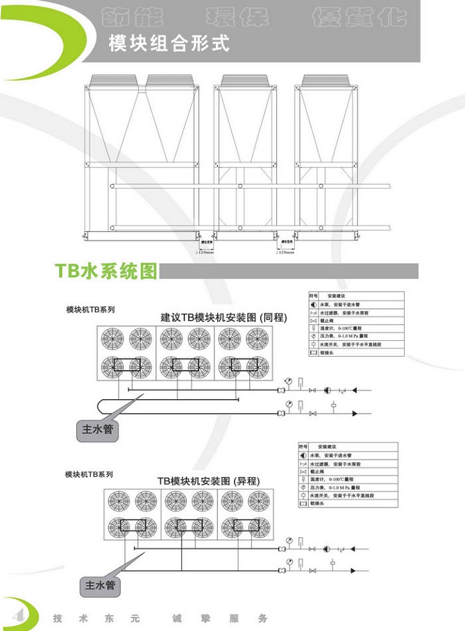模塊化的設(shè)計(jì),由單元模塊組合而成,根據(jù)負(fù)荷需要可選擇1-15個(gè)單元模塊。若需增加容量,可以增加模塊或再選擇適當(dāng)?shù)哪K組成機(jī)組,接入已有的系統(tǒng)就可投入運(yùn)行。