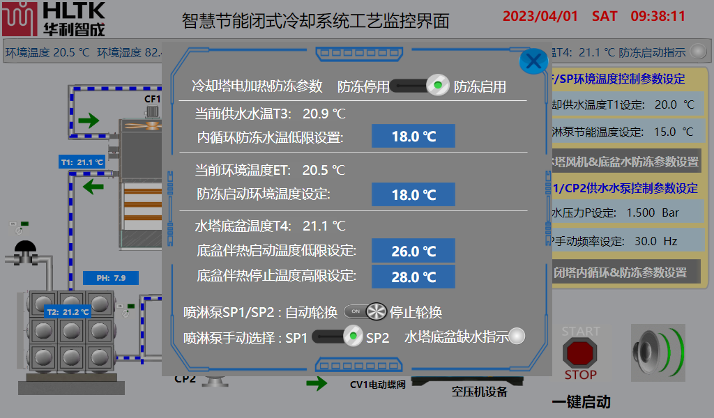 智慧節(jié)能閉式冷卻系統(tǒng)工藝監(jiān)控界面