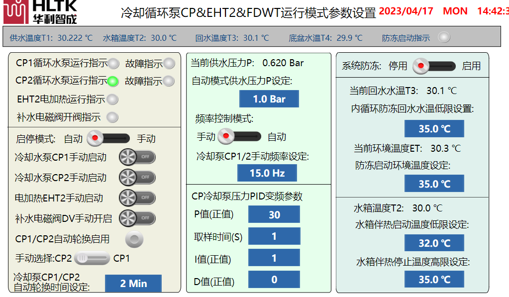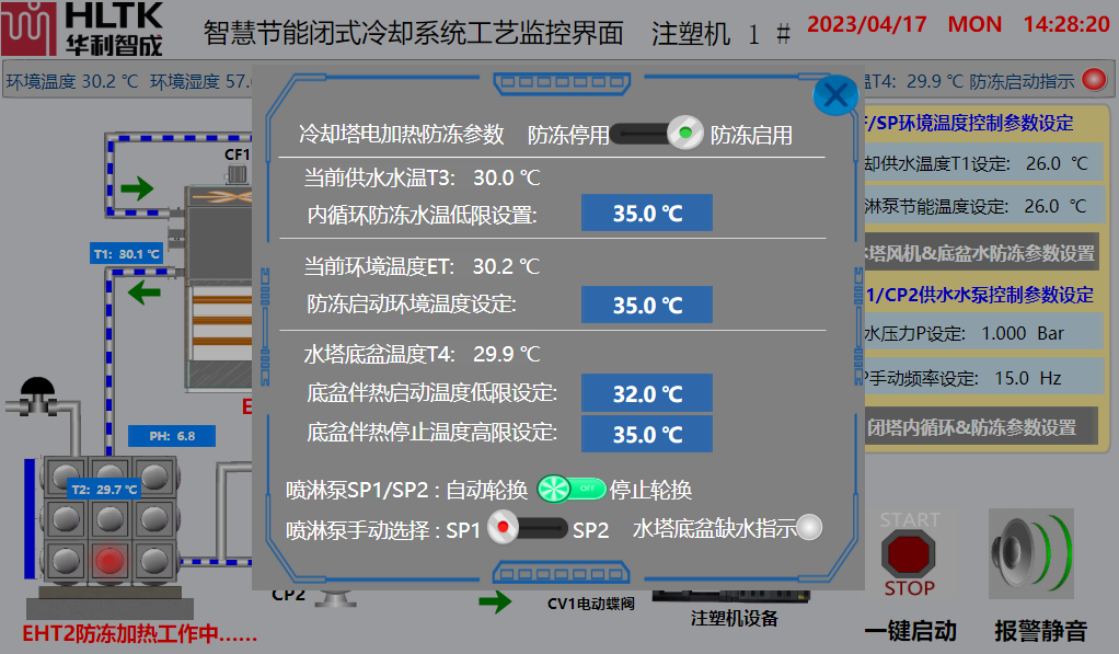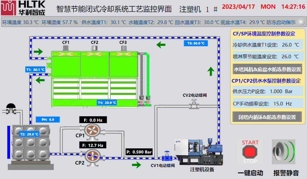 智慧節能閉式冷卻系統工藝監控界面注塑機