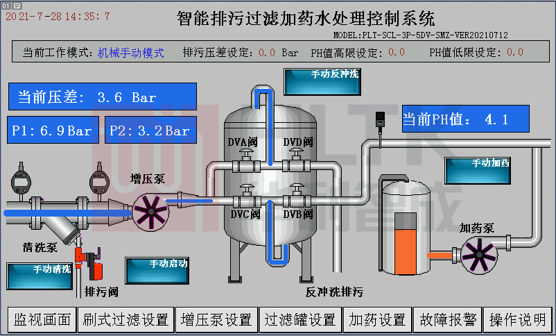 能夠實時監測和顯示水處理過程的各種參數,如水位、流量、溫度、壓力等,并具有數據存儲和歷史趨勢分析功能。